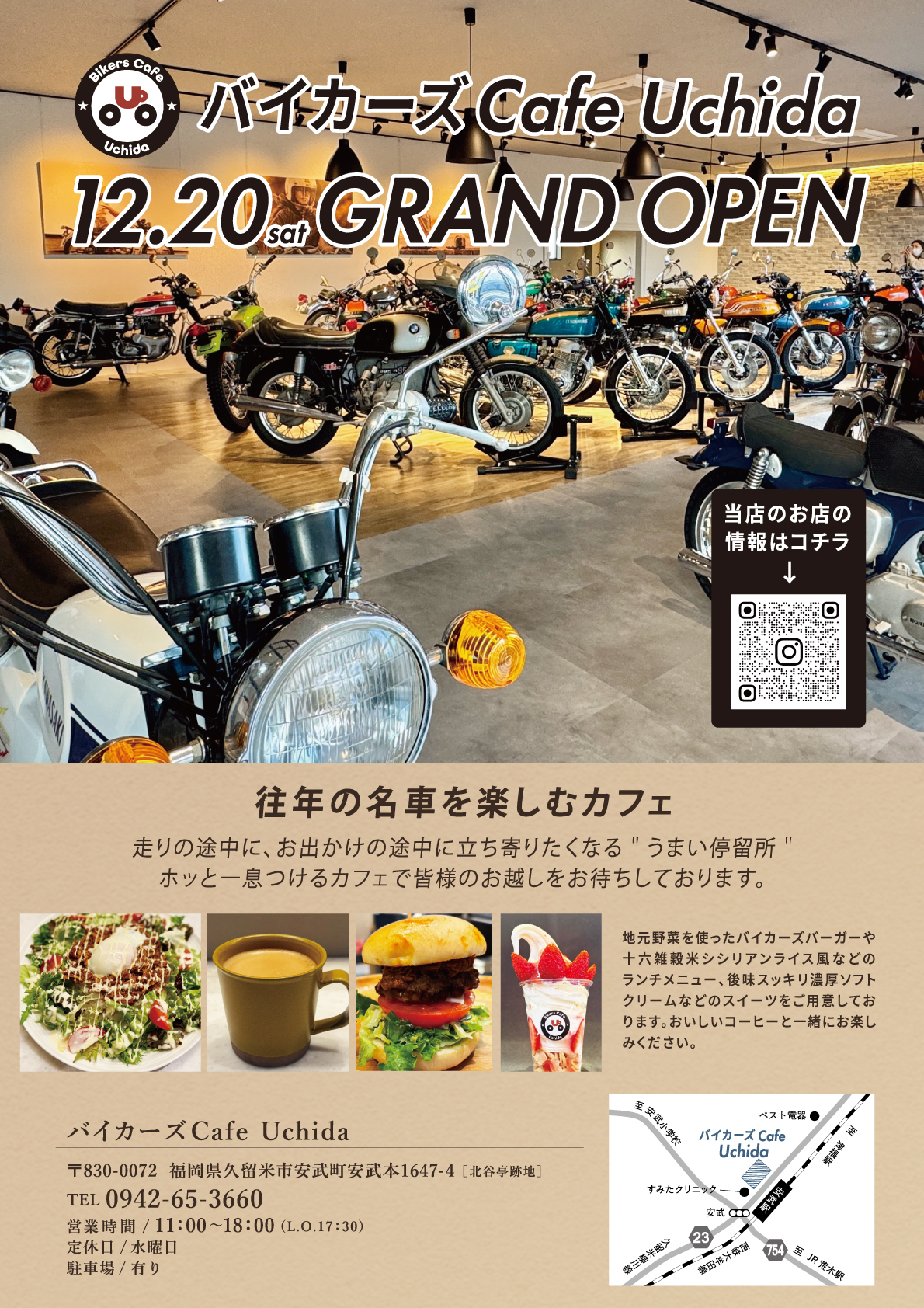 3. 12/20(土)「バイカーズ Cafe Uchida」オープンのご案内