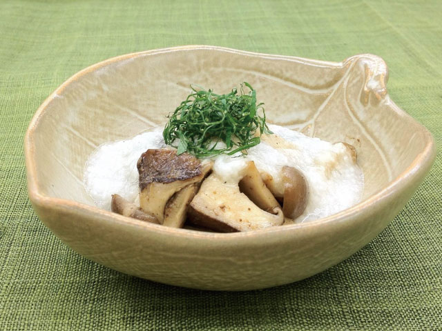 - 4.器に2を盛り、3の長いもをかけて青じそを添える。
